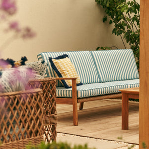 Kew 2 Seater Teak Garden Sofa, Raya Blue Stripe