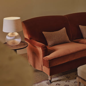 The Malton table lamp is crafted from fluted glass for a softly diffused light. It comes complete with a matching linen shade (which you can swap out should you wish) and industrial hardware in an aged black-bronze finish. Choose from two organic shapes and place it on a console table or bedside table.