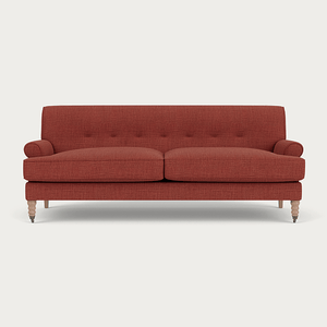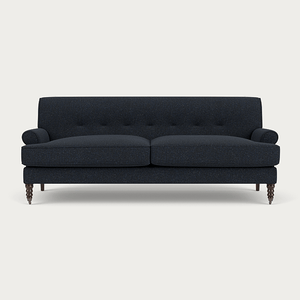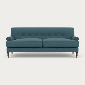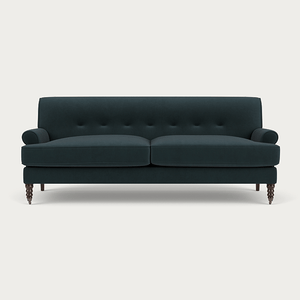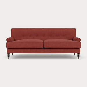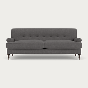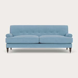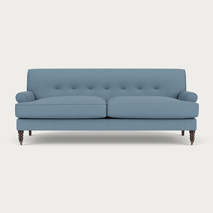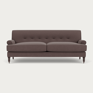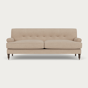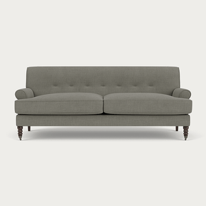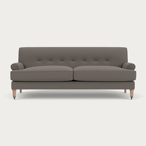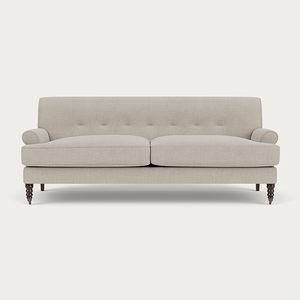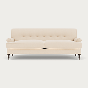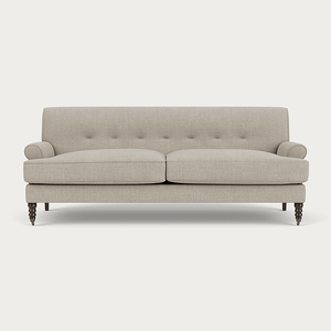 George ist eines unserer formelleren Sofas mit raffinierten Proportionen und einer reduzierten Tiefe, die es ermöglicht, in engere Räume zu passen. Er ist von Hand gepolstert, hat eine sanft geschwungene Rückenlehne und ist mit traditionellen Biesen gearbeitet. Die gedrechselten Beine aus massiver Eiche ruhen auf Messingrollen und sorgen für einen stattlichen und dennoch eleganten Look. Dieses große Modell bietet Platz für drei Personen.