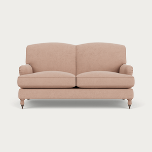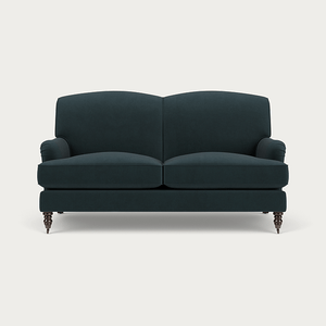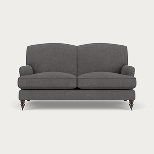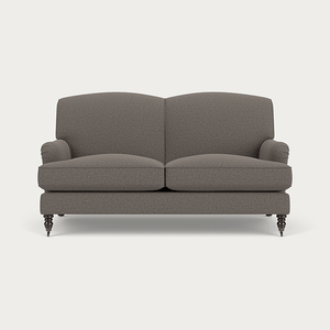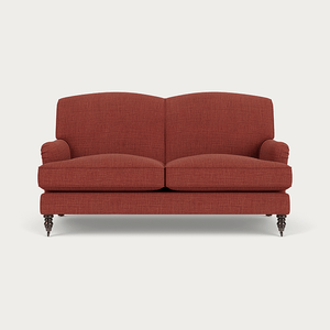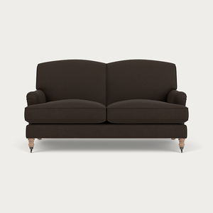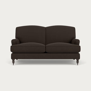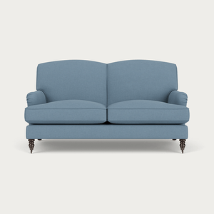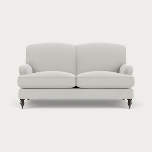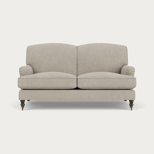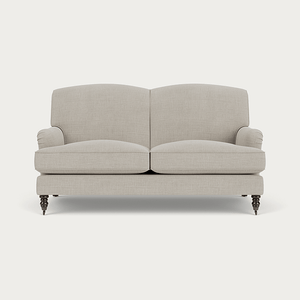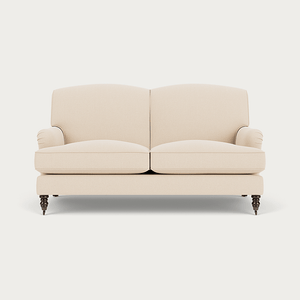 Olivia verkörpert die Quintessenz des englischen Sofas mit einem sehr tiefen Sitz und einer geschwungenen, doppelt gewölbten Rückenlehne. Während dies ein Sofa zum Versinken ist, bleibt es dank der eingezogenen Armlehnen und der gedrechselten Eichenbeine auf Messingrollen stattlich und elegant. Diese mittlere Größe bietet bequem Platz für zwei Personen.