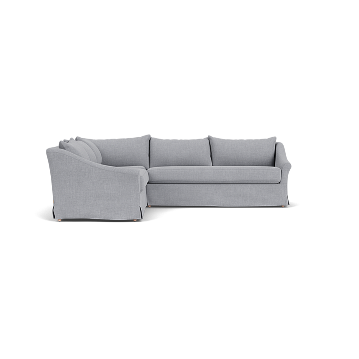 Experience grand-scale comfort with the Long Island six-seater L shape corner sofa, a magnificent embodiment of laid-back Belgian chic. This impressively proportioned sofa features a substantial extension on one side, offering an expansive design perfect for large families or frequent entertainers. It commands attention whether tucked into a vast corner or serving as the centrepiece in an open-plan space, clearly delineating a luxurious lounging area. Each individual module is covered with a precision-made, removable loose linen slipcover, its flowing skirt accented by crisp corner kick pleats, delivering unparalleled comfort with effortless style.