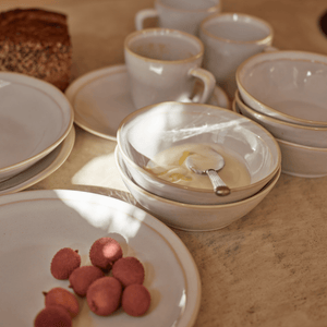Crafted from hardwearing stoneware by skilled artisans in Portugal, Sennen’s organic, ruffled silhouette brings unique texture to your table setting.