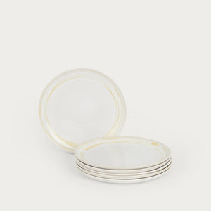 Amberley's natural silhouette reflects the artistry of skilled craftspeople in Portugal. Each piece is crafted from hardwearing stoneware and finished with a hand-applied reactive glaze, resulting in a unique, yellow-speckled finish. With its organic shape and relaxed elegance, these salad plates are perfect for enjoying lighter lunches or to serve sweet treats.