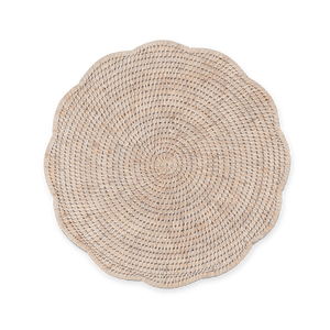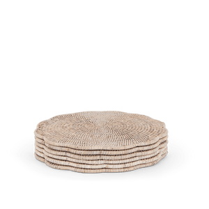 Ashcroft is woven from hard-wearing rattan, with a washed enamel finish that gives the natural fibre a more contemporary feel. As decorative as they are practical, these round placemats have a scalloped trim that bring a playful look to any table setting