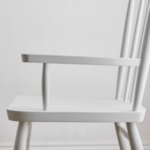 With its classic carver arms and ladder back, a homage to centuries-old Shaker craft skills, this chair takes its design cues from history and painted in a neutral eggshell Shingle colour.