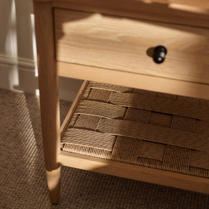 Frome is a contemporary take on classic regency designs, with slim proportions, rounded corners and a woven undershelf. The solid oak frame has a brushed finish that celebrates the natural grain of the wood. Use this side table beside a sofa or armchair, or as a bedside table.
