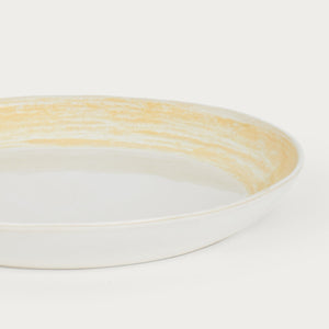 Amberley's natural silhouette reflects the artistry of skilled craftspeople in Portugal. Each piece is crafted from hardwearing stoneware and finished with a hand-applied reactive glaze, resulting in a unique, yellow-speckled finish. With its organic shape and relaxed elegance, this large dish is perfect for serving canapés or a selection of desserts.