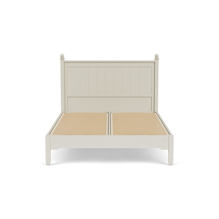 The Chichester king size bed highlights the collection’s balance of formality and warmth. Its painted frame is paired with a tongue-and-groove headboard and ornate finials that give the design structure. A sprung slatted base provides lasting mattress support, while the arched footboard creates space for storage. With Georgian-style legs and mouldings, it offers timeless character with a lighter, more versatile finish.