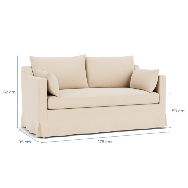 Designed with the minimalist aesthetic of the original Eliza sofa, this two-seater sofa offers a more relaxed feel with a removeable loose cover that drapes to the floor. Crafted with a kiln-dried tulipwood and birch plywood frame for strength and durability, it features elegantly turned oak legs and comfortable feather and fibre-wrapped foam cushions. The deeper proportions and comfortable single seat cushion are perfect for curling up on, seamlessly combining comfort with thoughtful design details.