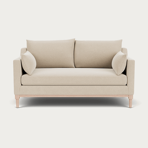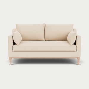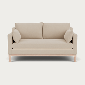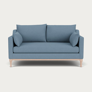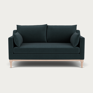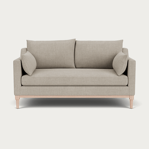 Eliza's minimalist aesthetic is inspired by the classic structure of a traditional Edwardian sofa, focusing on deeper proportions with a comfortable single seat cushion you can curl up on. This two-seater sofa is crafted with a kiln-dried tulipwood and birch plywood frame and plush feather and fibre-wrapped foam cushions, it features an exposed oak rail frame and elegantly turned oak legs, seamlessly combining comfort with thoughtfully considered design details.