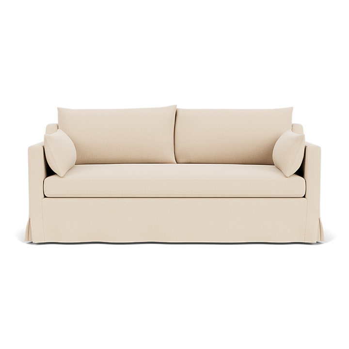 Maintaining the minimalist aesthetic of the original Eliza sofa, this three-seater loose cover sofa provides a more relaxed feel with its removable cover that subtly drapes to the floor. Crafted with a kiln-dried tulipwood and birch plywood frame for robust strength and durability, it features elegantly turned oak legs and comfortable feather and fibre-wrapped foam cushions. Its deeper proportions and single seat cushion make it an inviting spot for curling up, seamlessly combining comfort with thoughtful design details.
