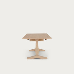 Harrogate is our farmhouse style dining collection. The tables feature unique pedestal supports and a solid oak tabletop, while the simple ladder-back chair is a design classic.
