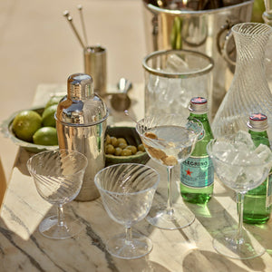 Islington’s brilliant clarity, glamorous silhouette and weighty feel make it the perfect choice for those extra-special get-togethers. Mouthblown in Poland by skilled artisans, each glass is finished with an optic twist that beautifully catches and reflects the light. These elegantly flared coupe glasses are perfect for serving champagne and cocktails.