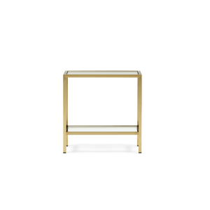 Keswick’s sleek silhouette and gleaming brass finish nod to refined Art Deco glamour. The glass surface and undershelf are set within a metal frame, with angular edges throughout for a smart, sophisticated feel. This side table’s slender rectangular proportions are perfect for nestling beside a sofa or an armchair.