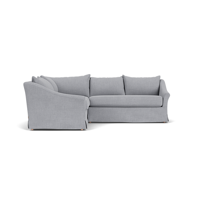 Inspired by laid-back Belgian chic, the Long Island four-seater L shape corner sofa brings versatile comfort to your living space. This design thoughtfully extends on one side, making it perfectly sized to tuck neatly into a corner for a cosy hub, or to subtly define a distinct seating area in an open-plan room. Each section boasts a removable loose linen slipcover, meticulously crafted to fit, with signature corner kick pleats on the flowing skirt. It strikes an ideal balance of neat tailoring and relaxed style, creating an inviting spot for intimate gatherings or stretching out.