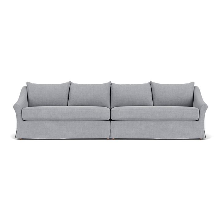 Embodying laidback coastal living with a soft, generously proportioned form, the Long Island large four-seater modular sofa offers expansive comfort. The loose slipcovers are precision-tailored and secured with hidden wooden toggles and discreet Velcro points. A flowing skirt with corner kick pleats lends an easy yet refined feel. Inside, the back cushions are cleverly sectioned into internal pockets to help maintain their plush shape, and filled with a perfect blend of feather, fibre, and foam for just the right level of comfort.