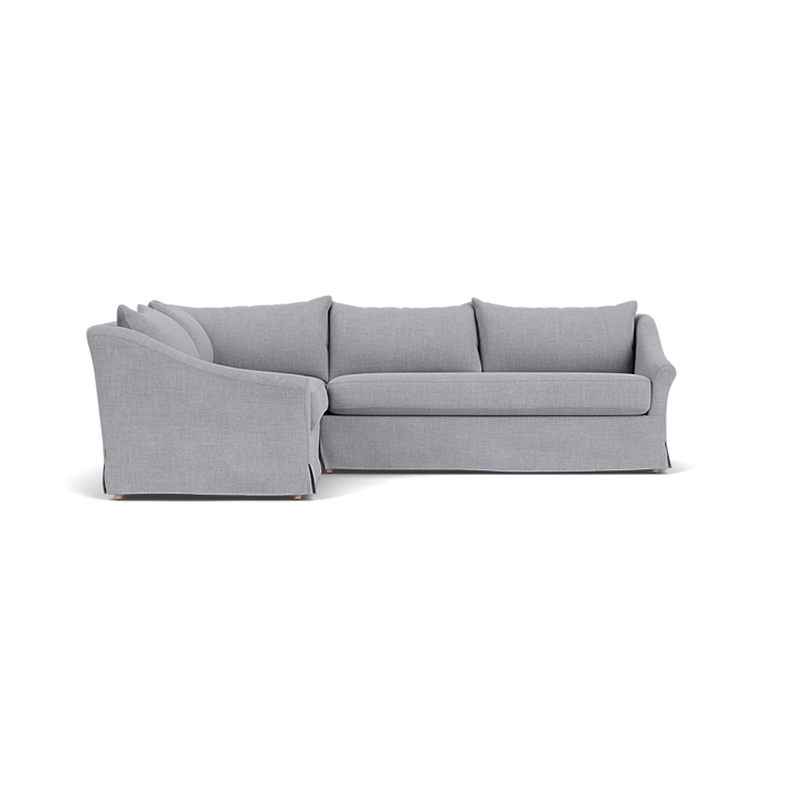 Embodying laid-back Belgian chic, the Long Island five-seater L shape corner sofa is designed for spacious comfort and relaxed entertaining. With a generous extension on one side, this configuration provides ample room to spread out. It effortlessly fits into a corner to maximize space, or can confidently stand in the middle of a room, creating a clear and inviting seating zone. Every module features its own precision-made, removable loose linen slipcover, complete with a flowing skirt and corner kick pleats, ensuring a consistently refined yet wonderfully relaxed aesthetic.