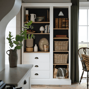 Pembroke is our modular shelving system, designed to bring clever fitted storage to anywhere from kitchen to home office. This is one of the cabinets that makes up our configurations, but it can work just as well on its own for alcove shelving. Its customisable painted finish and solid oak shelves make Pembroke a timeless storage piece. Simply enquire in store to find out more.