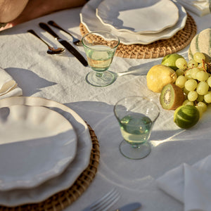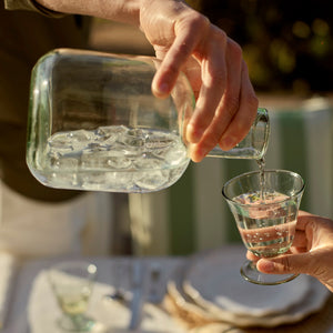 Primrose's lightweight design, relaxed silhouette, and subtle green tint make it a natural choice for relaxed dining. Each glass is mouthblown by skilled artisans, giving it individual character and a distinctly handcrafted feel. Perfect for adding a touch of simplicity and elegance, this set of bistro glasses is ideal for serving water or juice with morning breakfast or enjoying a short cocktail alfresco.